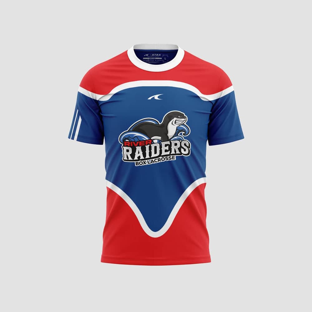 Kids sublimated t-shirt of the boxlacrosse club River Raiders.