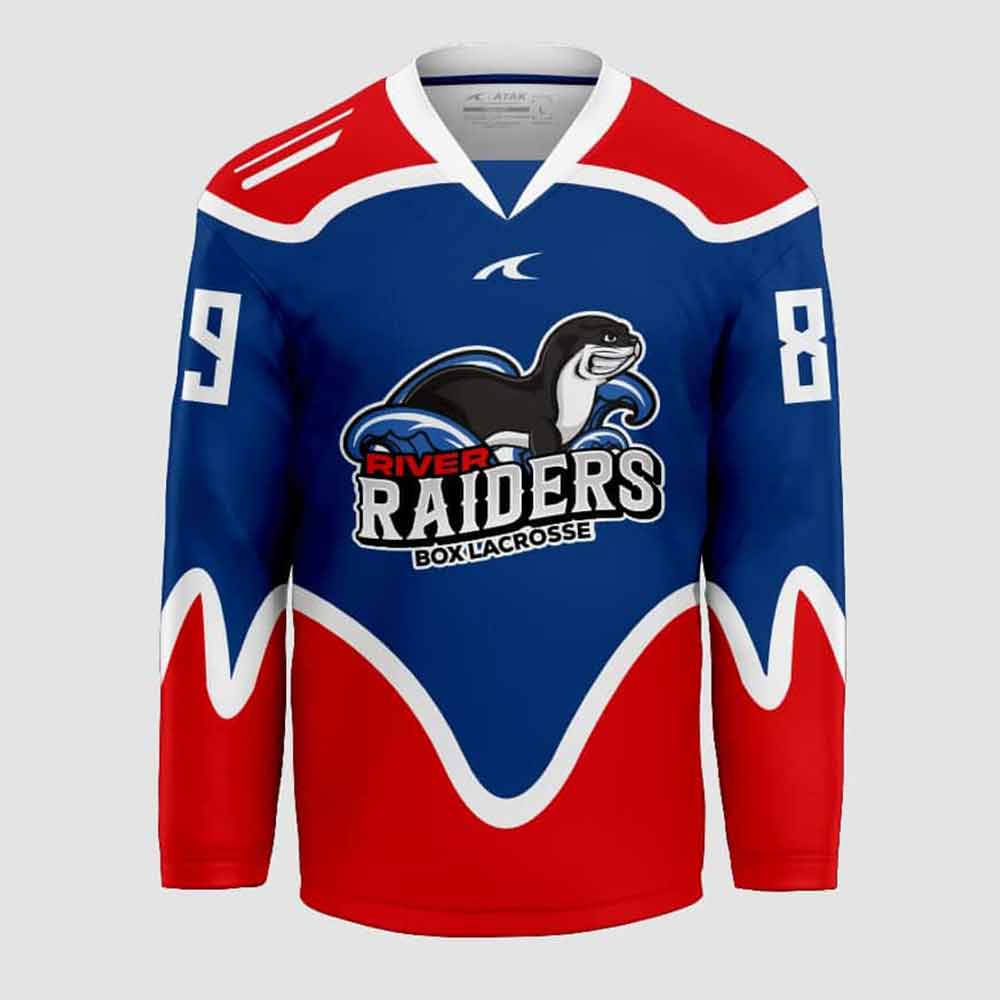 Match jersey of the boxlacrosse club River Raiders.